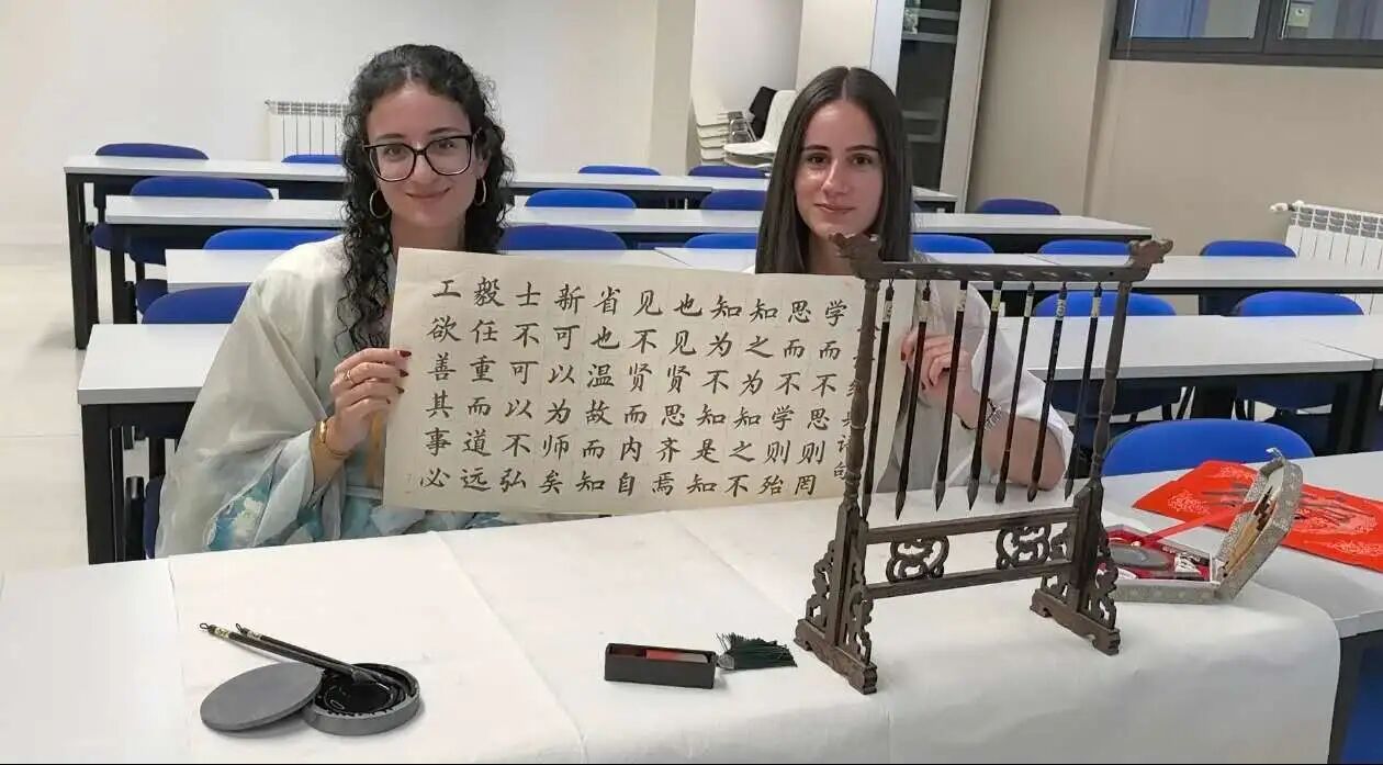该作品以生动活泼的视听语言,讲述了西班牙姐妹花Ainara和Carlota学习中文的奇妙经历。视频中,孔院李真老师带领学生将热门西语歌曲《Sofía》创新改编为《学中文》版,通过充满巧思的歌词,将汉字比作“迷宫”,语法喻为“斗牛”,生动诠释了文化交融与青春追梦的主题。