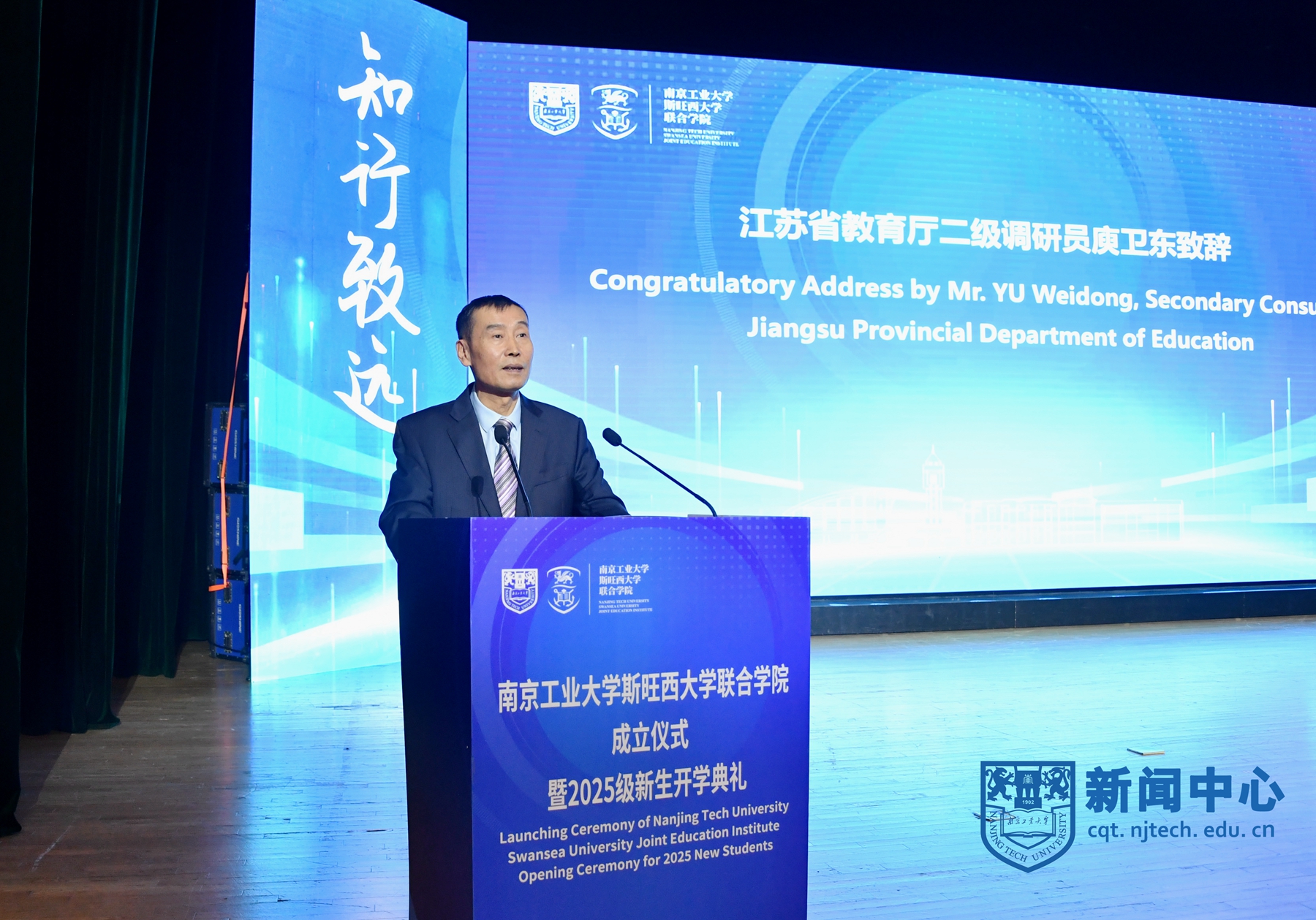 9月11日下午,南京工业大学斯旺西大学联合学院成立仪式暨2025级新生开学典礼在大礼堂举行。校长蒋军成、斯旺西大学校长Paul Boyle、中国教育国际交流协会中外合作办学分会理事长方军、江苏省教育厅二级调研员庾卫东、英国驻上海总领事馆文化教育领事Catherine Sinclair-Jones、澳大利亚技术科学与工程院院士谢亿民,副校长陆伟东、戴志晖、顾学红等出席典礼,开学典礼由副校长凌祥主持。